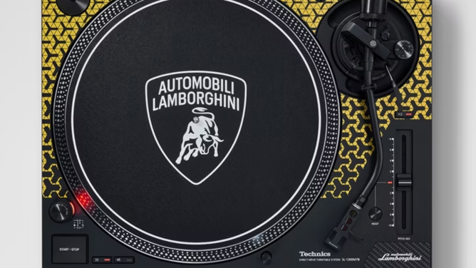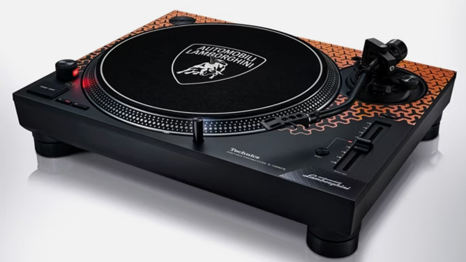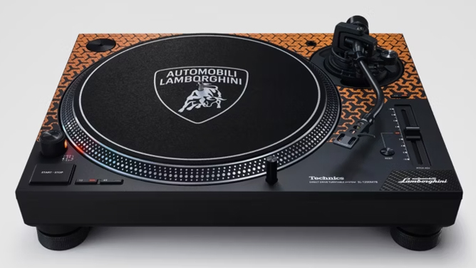 Taking design cues from Lamborghini’s exotic supercars, the SL-1200M7B is available in vibrant orange, green, or yellow—mirroring the automaker’s classic liveries. It boasts Lamborghini’s signature Y-shaped pattern, a carbon fiber inlay with a Lamborghini script logo, and a custom slip mat adorned with the iconic Lambo emblem. As a cherry on top, this collaborative masterpiece includes a special 12” vinyl with engine notes from Lamborghini’s legendary V12 models and several co-branded stickers. Priced at $1,600, this turntable is available for order now, with deliveries starting later this summer.