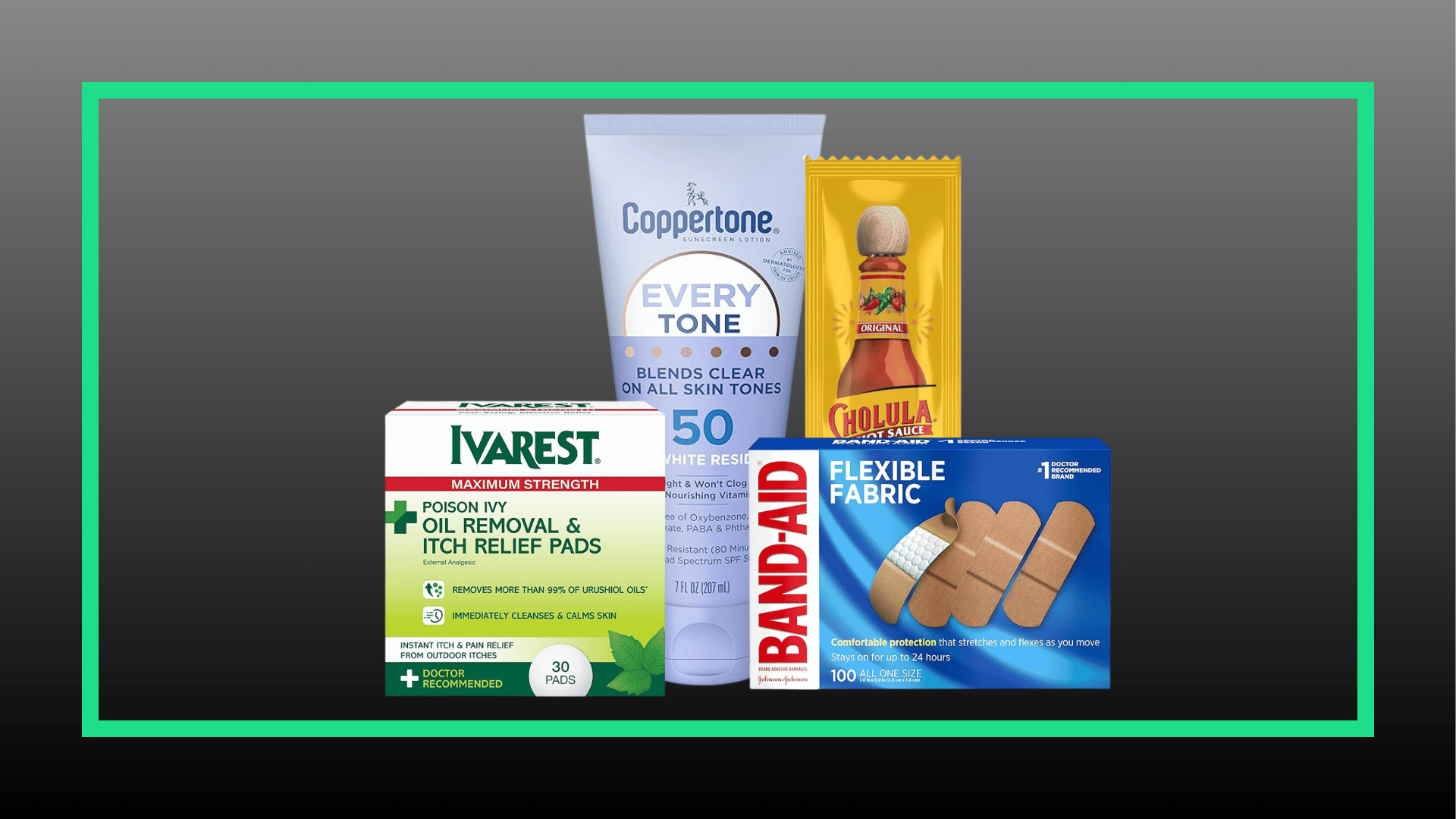 Their pack never includes hammocks and frisbees, but it always includes sunscreen, hot sauce packets, a deuce of spades trowel, and a basic first aid kit with Band-aids, Tylenol, alcohol wipes, a needle for popping blisters, and poison ivy cleaner.