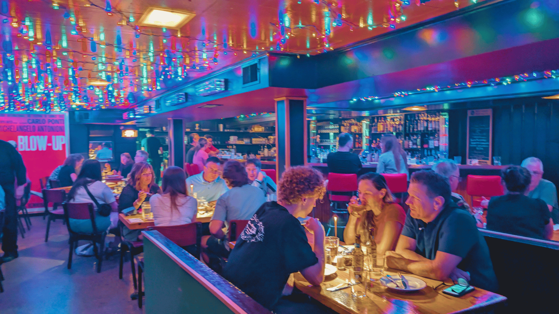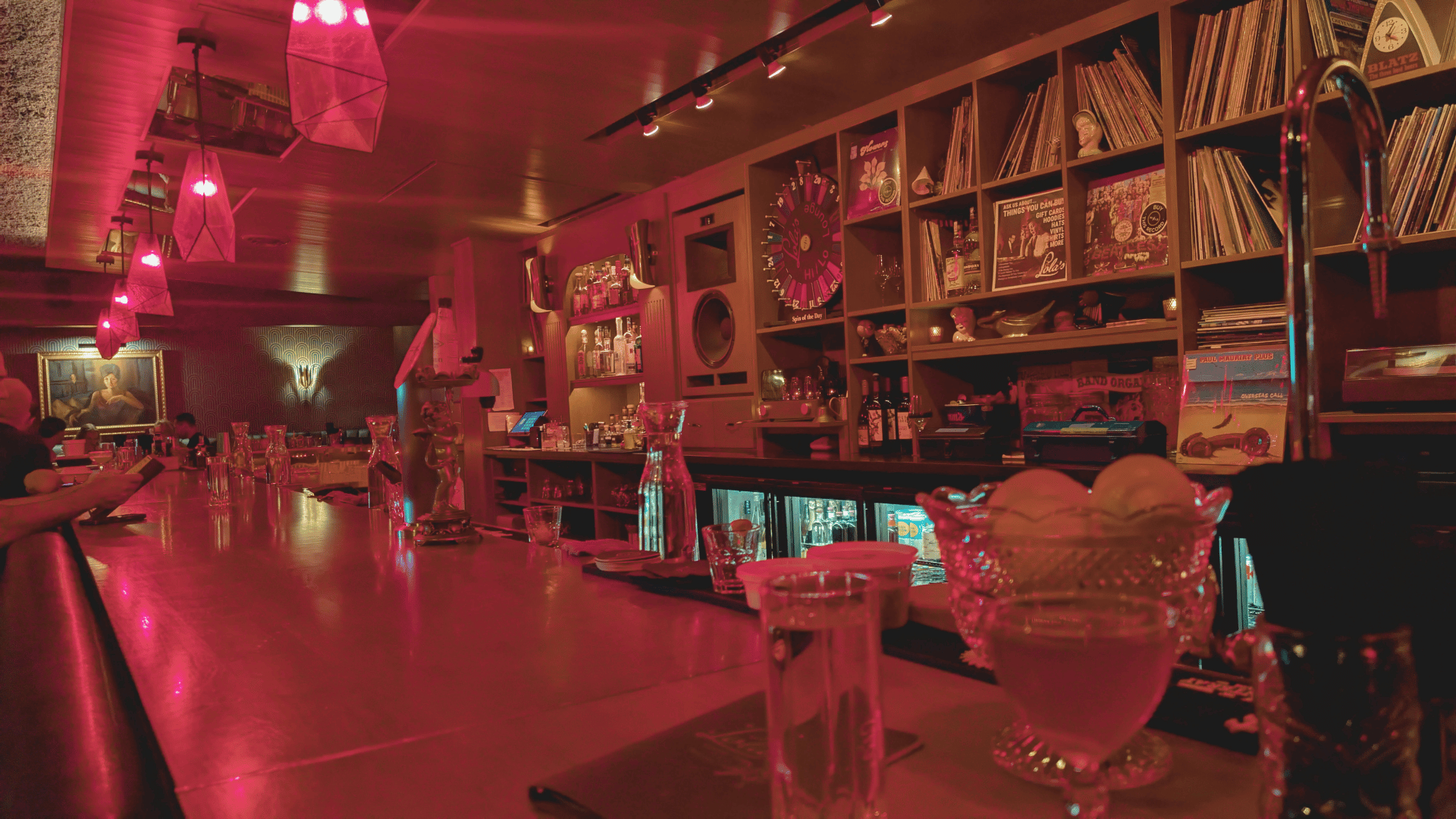 Lola’s Hi/Lo Lounge is a cool twist on the HiFi bar. As they put it, Lola’s is a “‘Wisconsin fancy’ Midwestern spin on the HiFi bar. A HiFi love letter to the low brow.” Inspired by Lola’s Tomcat Lounge in Nazianz, WI, Lola’s Hi/Lo Lounge is decorated with Marilyn Monroe memorabilia and vinyl records lining the wall behind the bar, which is soaked in moody red lighting. Lola’s follows the Hi-Fi trend with a quality sound setup and a DJ spinning records.